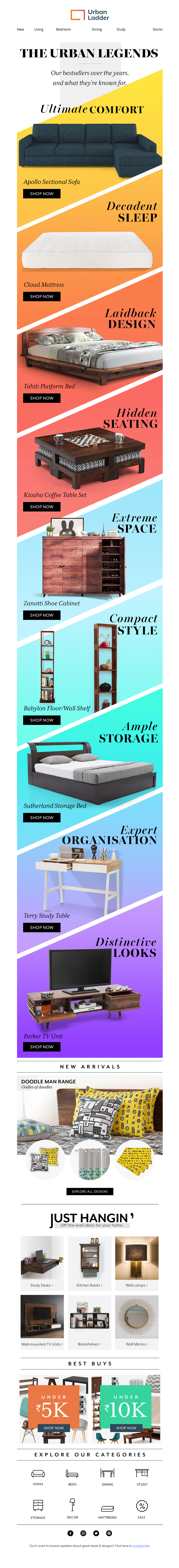 A newsletter to talk about Urban Ladder’s bestsellers and the unique thing each one is known for, in two words. Published here.