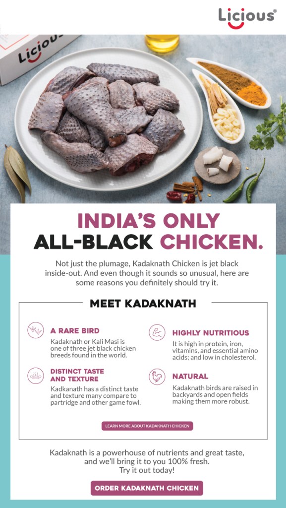 Emailer about the nutritional value of Kadaknath Chicken – India’s only all-black chicken breed, a brand new offering from Licious.